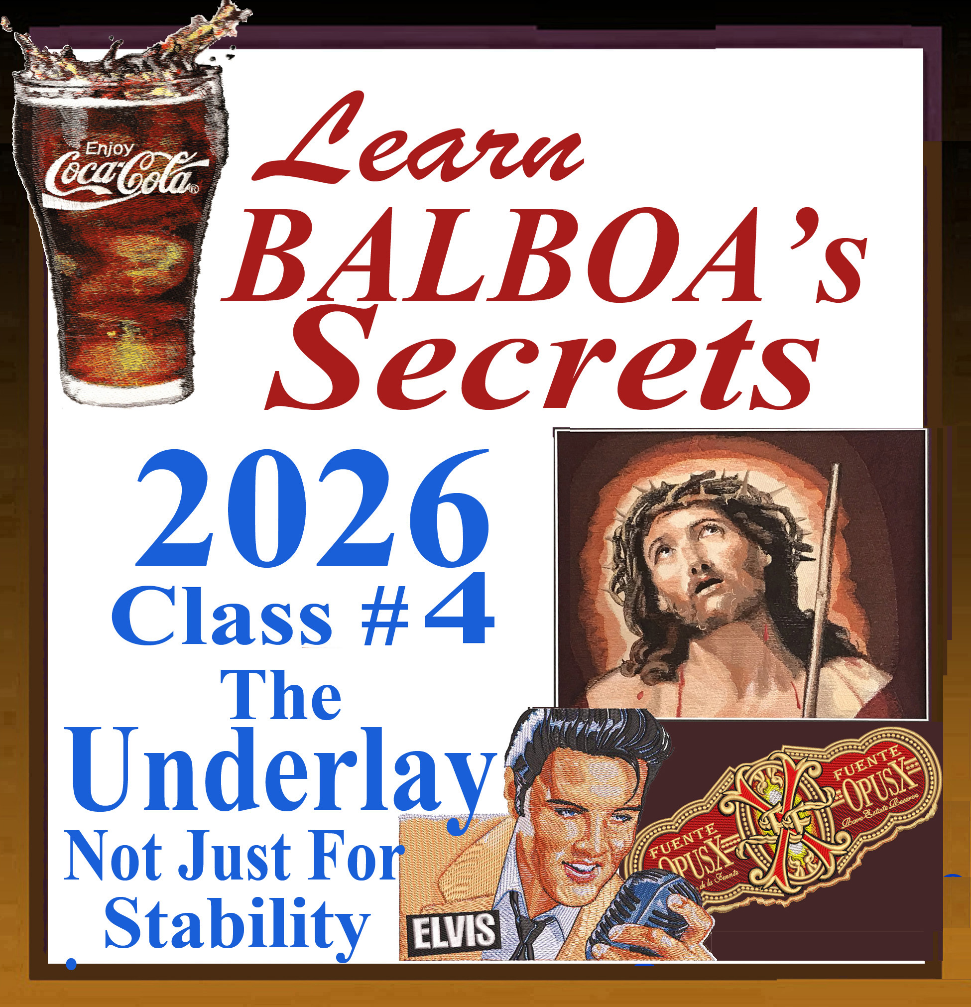 July 21, 2026: Class #13 9:30 AM Pacific Time: Stitch Saving Techniques Balboa Stitch Designs. Back to the “Basics”. This is what started it all! A low stitch design that costs pennies to run and looks like a million dollars.